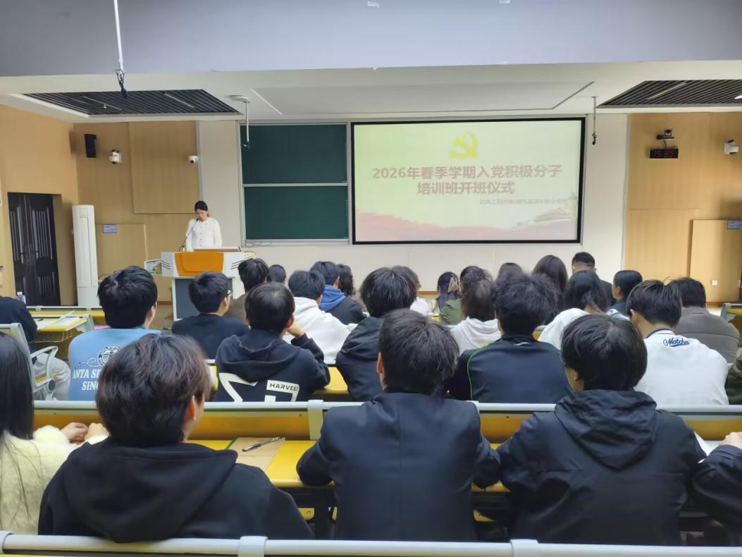 4月1日,机电工程学院与绿色能源学院分党校2026年春季入党积极分子培训班开班仪式在汉水楼110教室隆重举行。机电工程学院党总支委员李亚竹,机电工程学院教师第一党支部负责人廖文蓉,机电工程学院学生党支部负责人李曾、机电工程学院学生党支部委员尹浩扬,绿色能源学院教师党支部书记刘姣姣、绿色能源学院学生党支部委员祝莹出席仪式。开班仪式由机电工程学院学生党支部委员官晓敏主持。