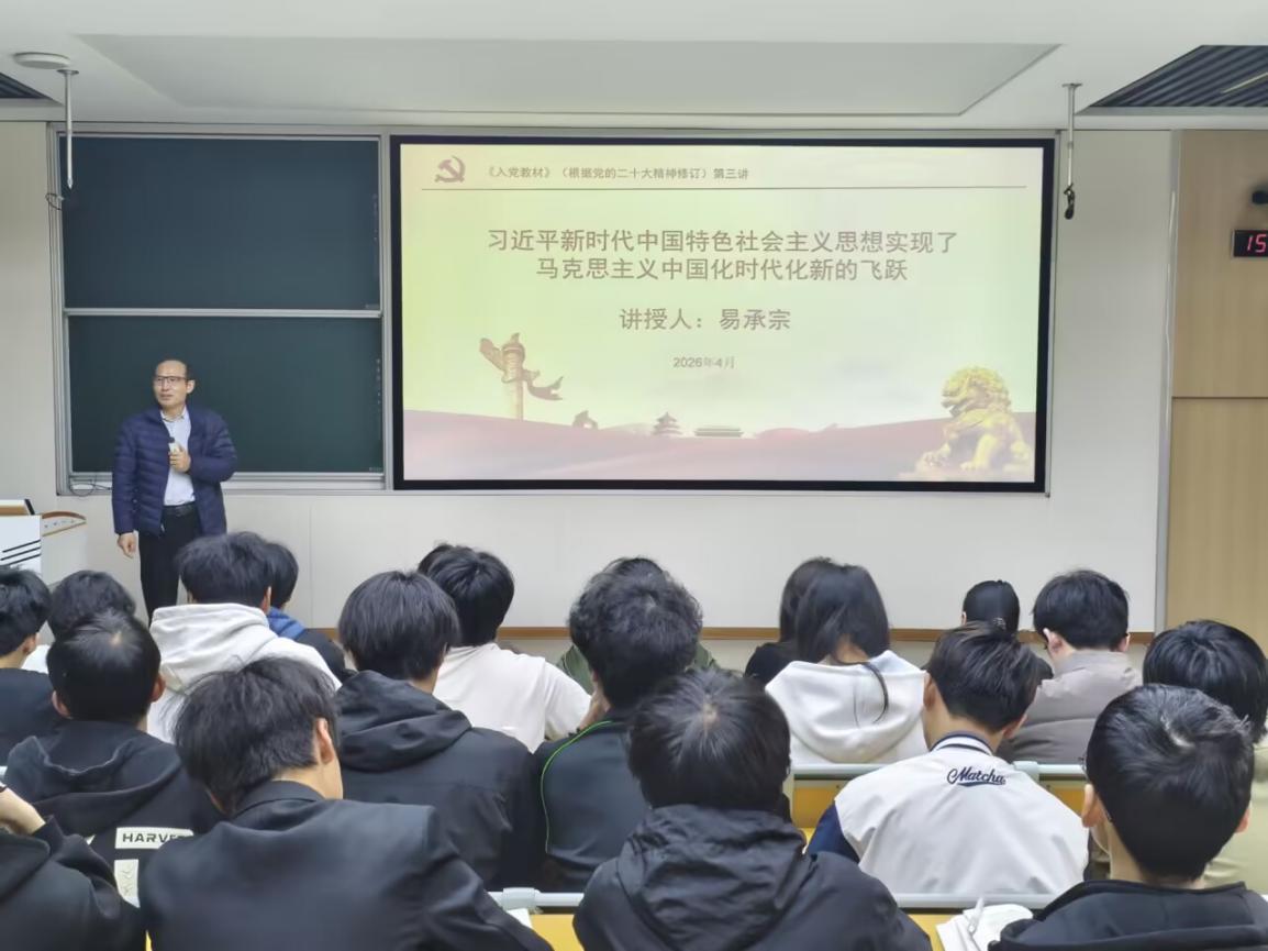 开班仪式后,校组织员易承宗以“习近平新时代中国特色社会主义思想实现了马克思主义中国化时代化新的飞跃”为题讲授首堂党课,他结合鲜活案例阐释党的初心使命与青年责任担当。党课内容丰富、语言生动、情真意切,赢得了学员们的阵阵掌声。学员们专注聆听、认真记录,展现出积极向上的精神风貌。