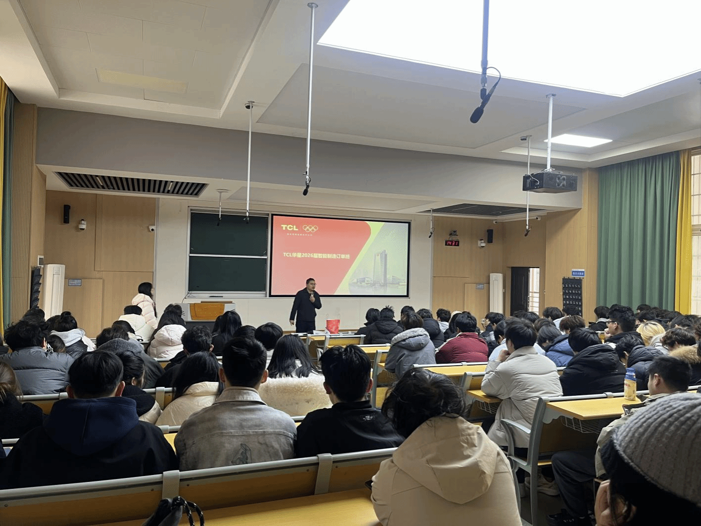 宣讲会上,企业代表陈祥介绍了华星光电的发展历程、行业地位、技术优势以及广州新基地的战略布局与广阔前景。他重点围绕同学们关心的入职岗位发展路径、工作内容、技能要求以及薪资福利体系进行了讲解。通过真实案例的分享与直观的数据展示,为在场学生描绘了一幅清晰、可期的职业发展蓝图,有效解答了同学们的诸多疑惑。