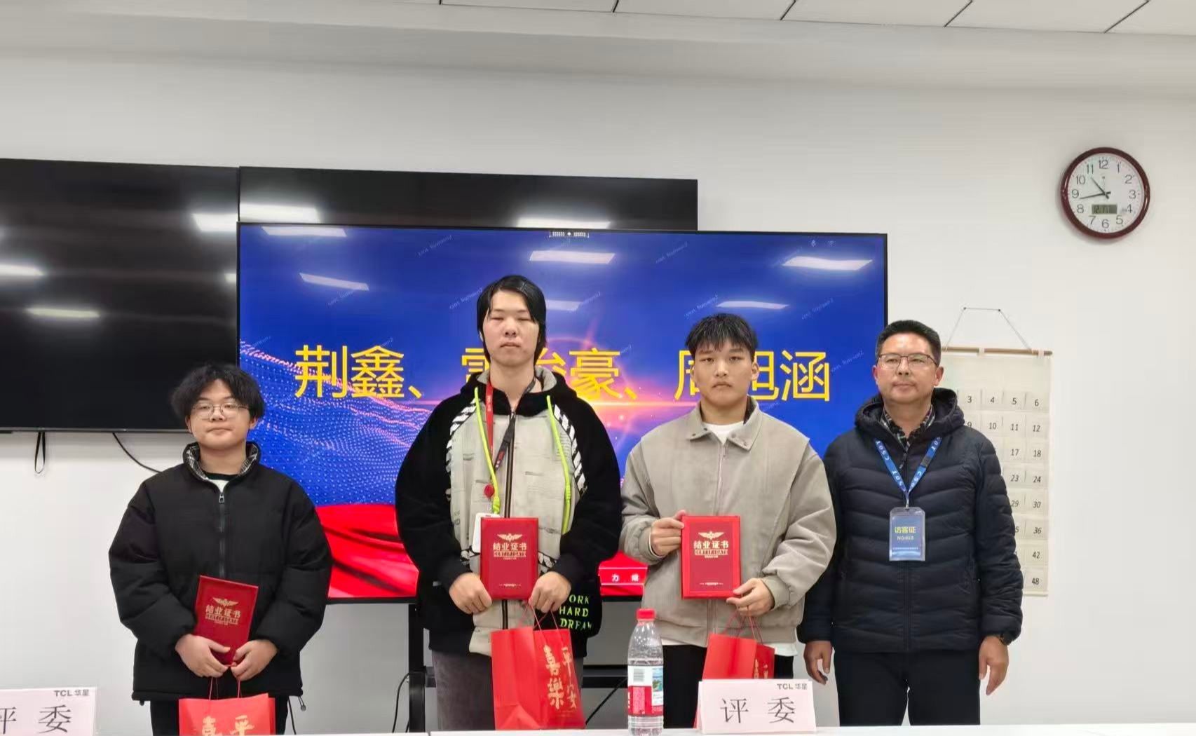 2025年12月17日,武汉华星光电2026届现场工程师班第一阶段成长答辩会顺利举行,机电工程学院副院长肖青、骨干教师周海波与龙俊受邀出席,与企业导师共同组成评审团,全程参与学员答辩与成果评定。